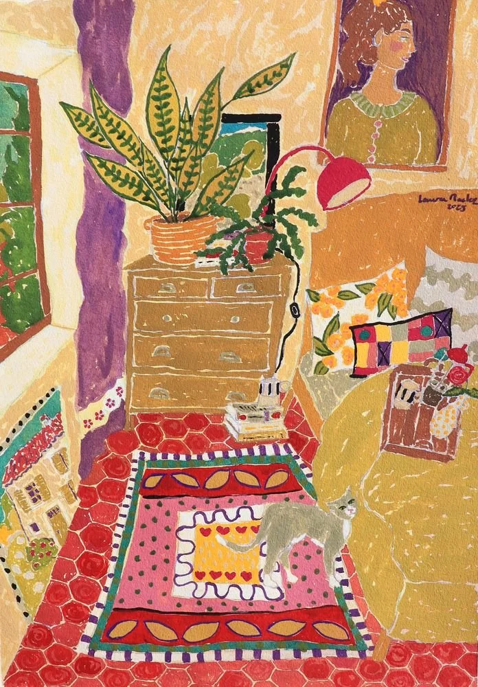 Tout d’abord j’aimerais vous partagez le travail de Laura Rachez ( image ci-dessus ) que j’ai découverte en cherchant des images pour habiller ma newsletter avec la volonté d’aller à la rencontre du travail d’autres artistes. Elle travaille avec la peinture acrylique et l’aquarelle, via le lien qui vous amènera sur son site vous y trouverez également un blog dans lequel elle vous invite dans tout son processus artistique et pour celles et ceux qui serez tenté par un cours de peinture et bien c’est possible aussi.